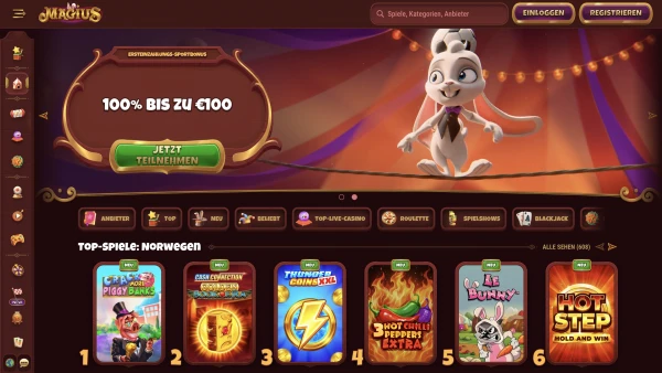 Für Kontoprüfungen können wir Identitäts- und Adressdokumente sowie einen Nachweis der Zahlungsmethode anfordern. Die Verifizierung dauert in der Regel 1 bis 3 Werktage. Wenn du bereits ein Konto hast, ist der Magius Login-Button im oberen Bereich leicht zu finden. Gib deine E-Mail oder deinen Benutzernamen und dein Passwort ein, um auf dein Guthaben, die Spiele und die Kasse zuzugreifen. Wenn du deine Daten vergessen hast, nutze die Passwort-Wiederherstellung im gleichen Magius Login-Bereich.